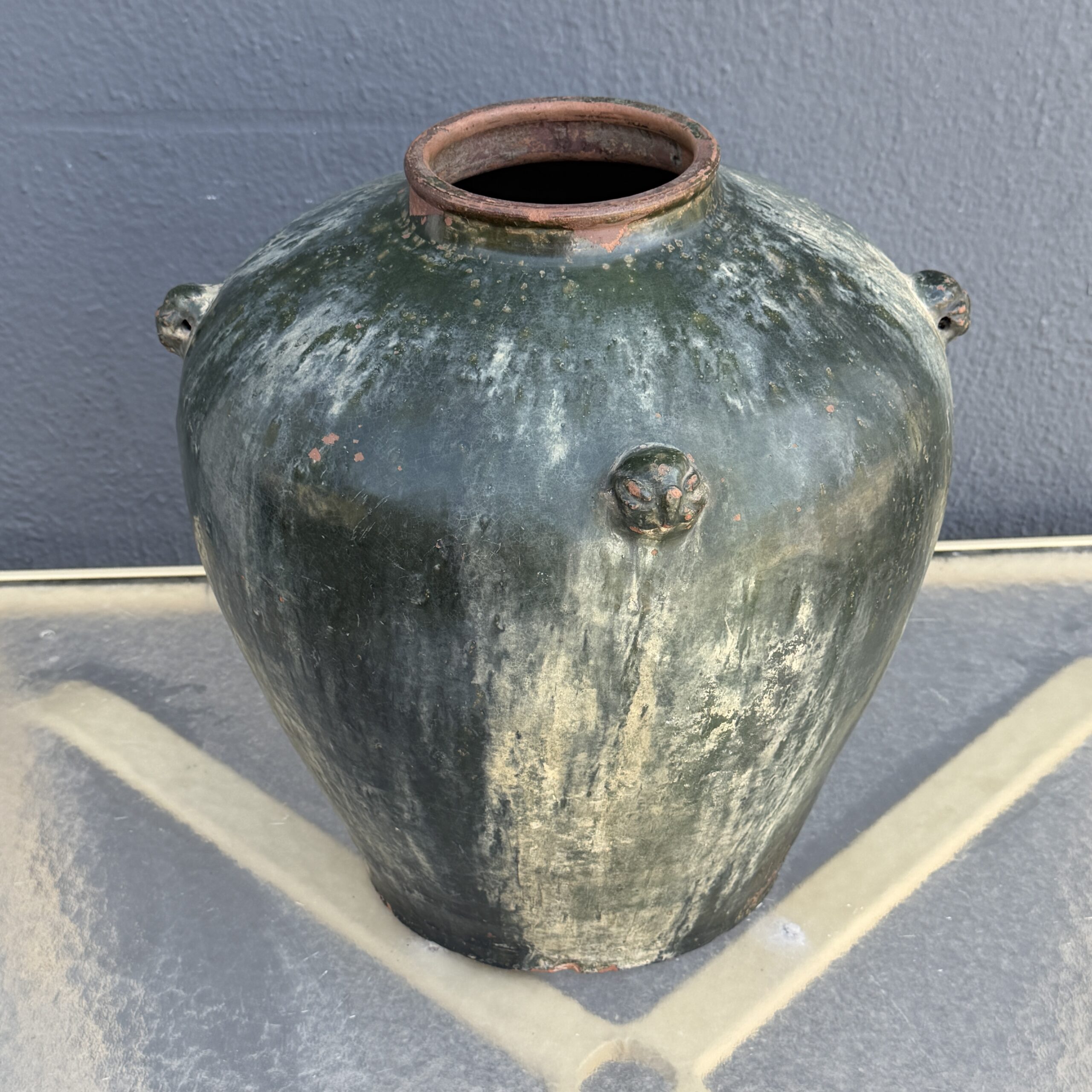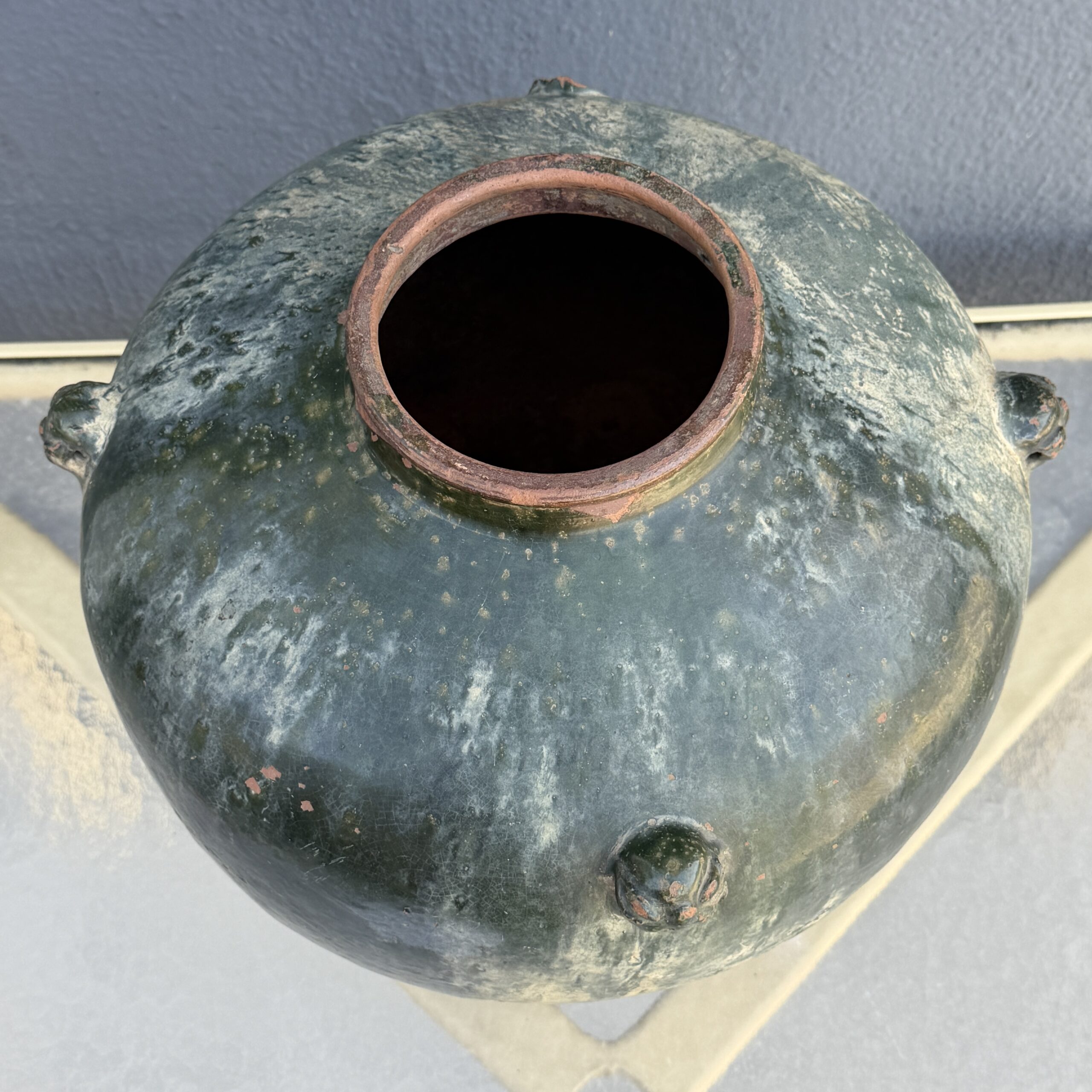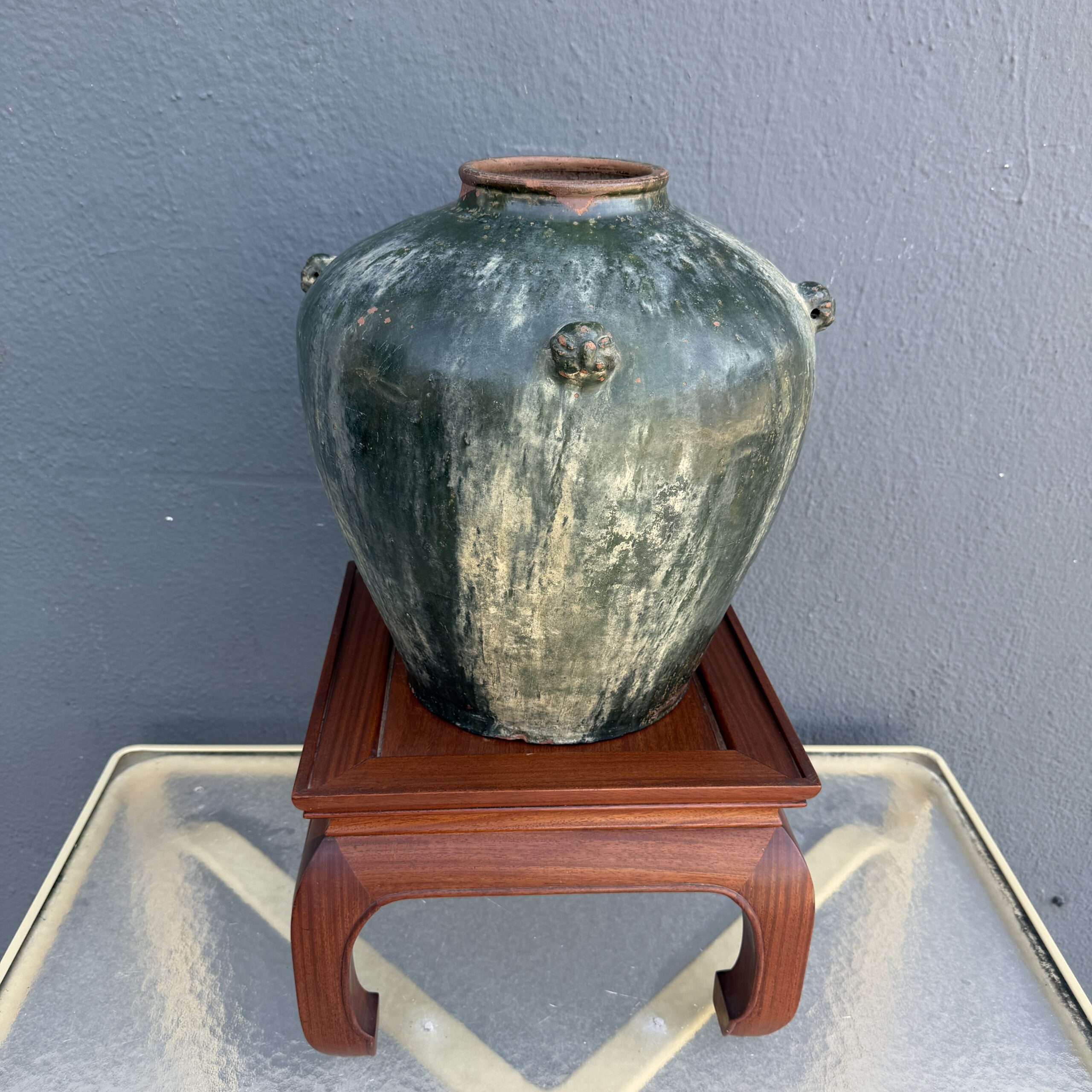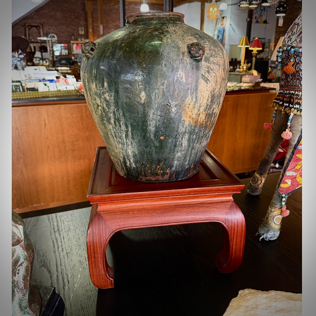 Japanese Wood-fired Terracotta Urn / Mahongany Stand