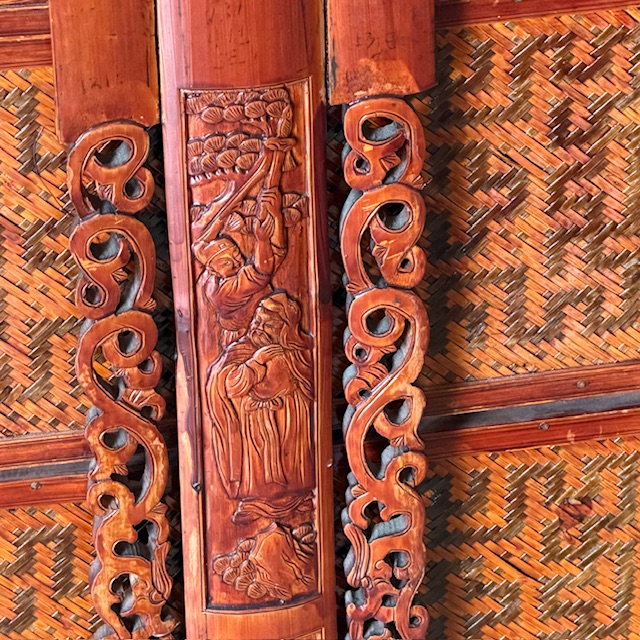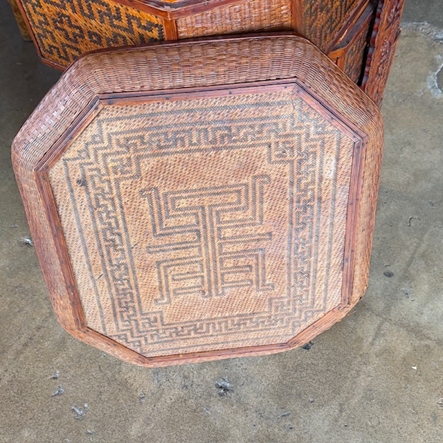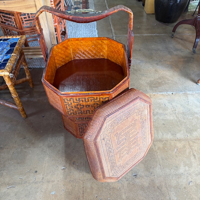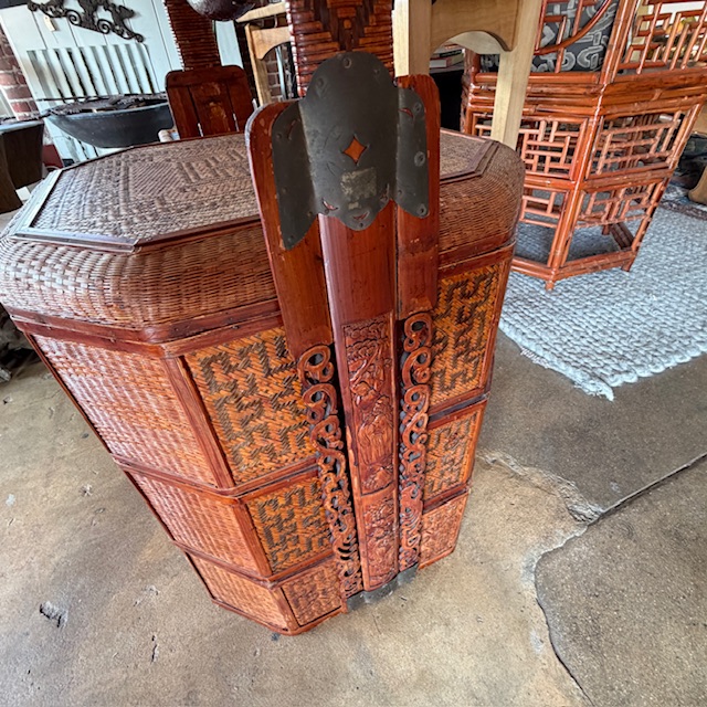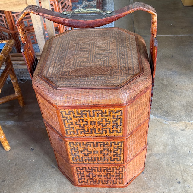Large Vintage Chinese Wedding Basket 3 Tiers Wood/Wicker