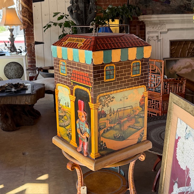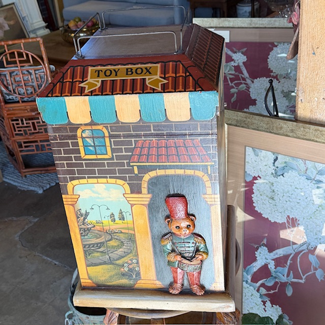 Vintage Whimsical Painted Wooden Toy Chest