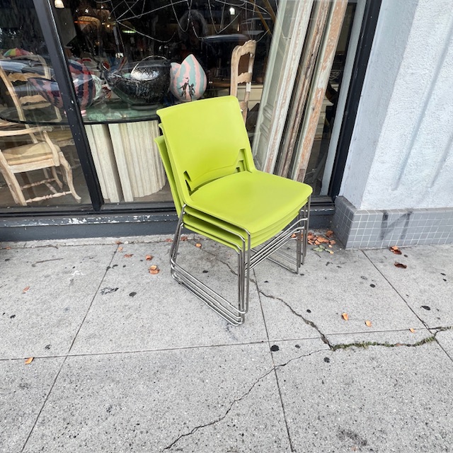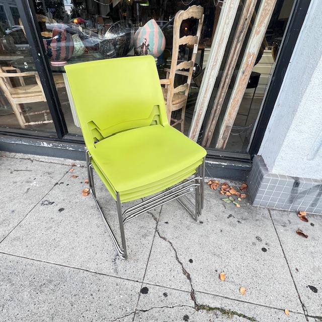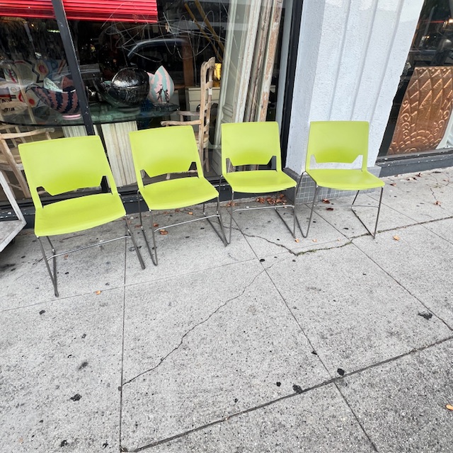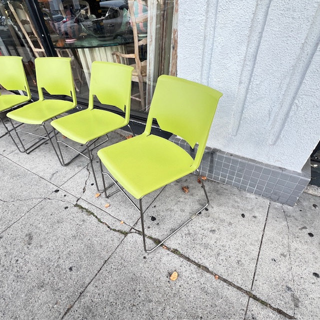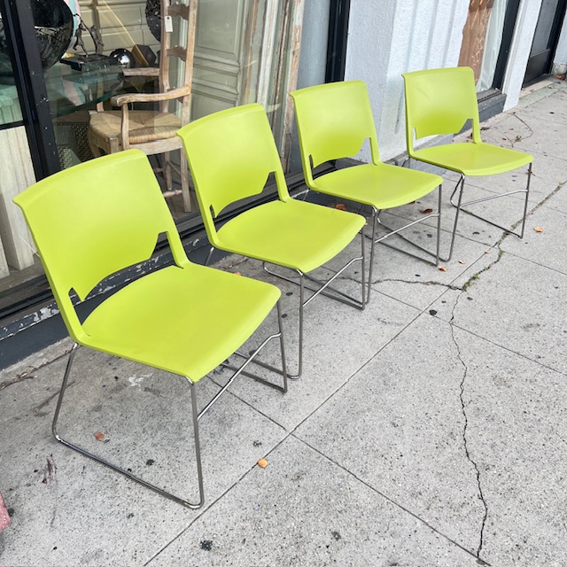 4 Lime Green Wireframe Stacking Chairs